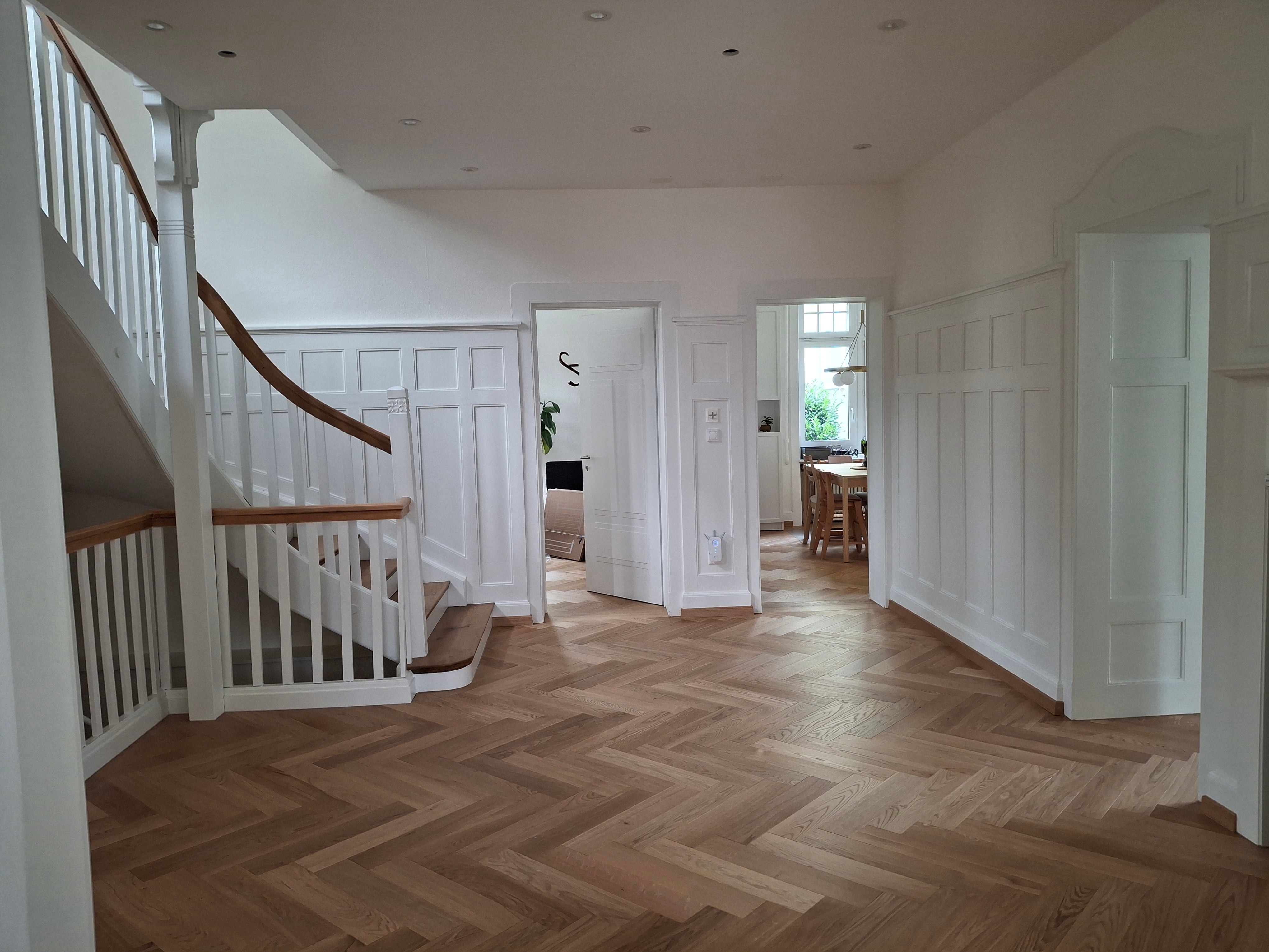 Treppenaufgang und Eingangsbereich neu gestrichen (neuer Boden verlegt)